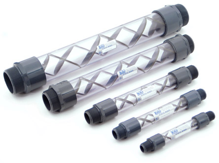 Mixing element: 316 stainless steel or Black PVC (not shown)
